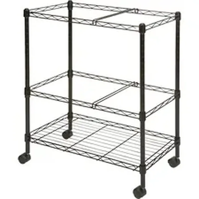 Wire file cart offers two tiers of mobile filing to organize projects anywhere in your office. Letter-size folders can be placed in two rows for front-to-back filing or one lengthwise row on each file frame. The bottom shelf can be used for storage if additional filing is not needed. File frames accommodate both letter-size and legal-size hanging file folders. Wire cart is made of sturdy steel construction with a scratch-resistant, powder-coat finish. Two of the four swivel casters lock so you can secure the cart by your desk or file cabinet with no concern of it rolling away.