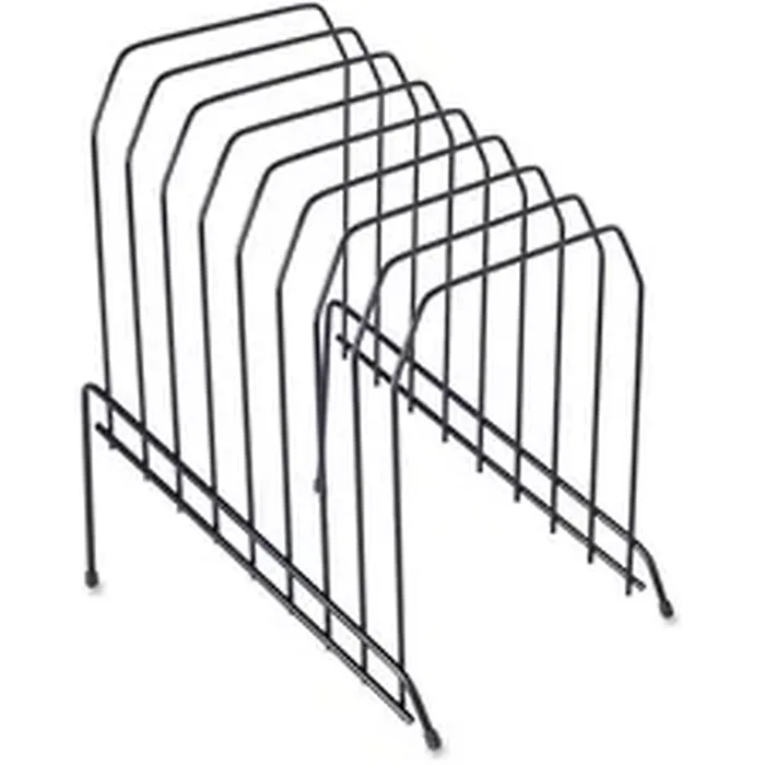Handy vertical file sorter/holder helps you identify your files at a glance. Inclined design includes eight vertical wire dividers to keep frequently used files at your fingertips. It is perfect for your desktop. File holder is made of strong, heavy wire with a powder-coat finish for durability. Rubber feet protect your desk surface.