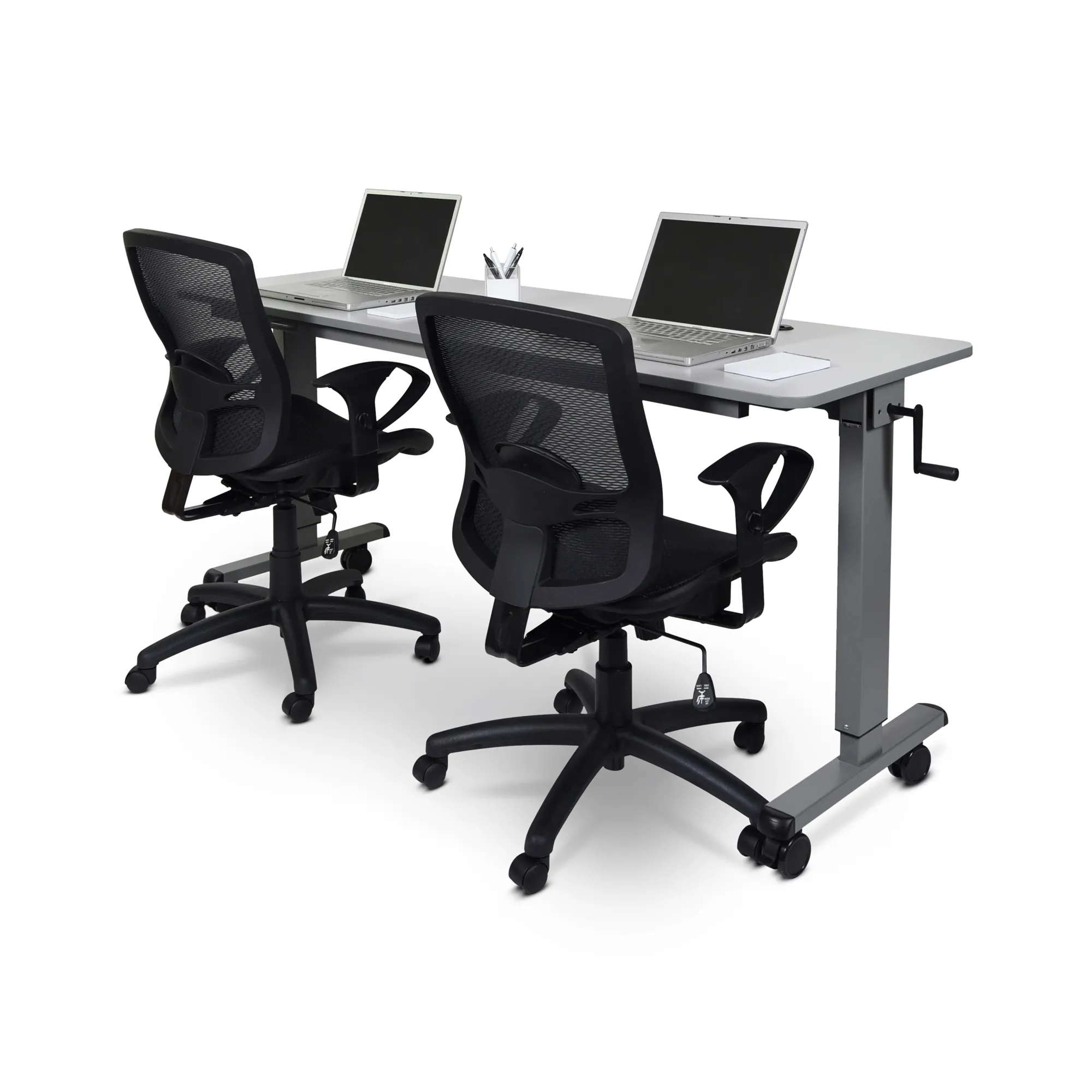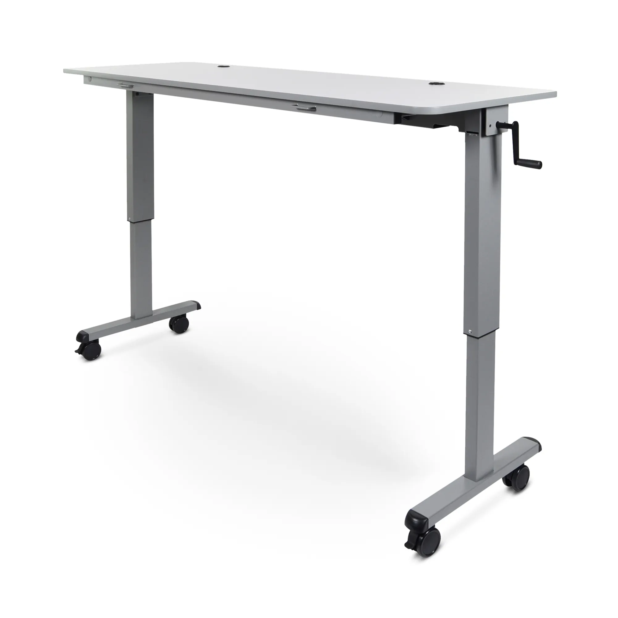 The Luxor 72" Adjustable Crank Flip Top Table is a versatile and ergonomic solution for various environments such as schools, training rooms, and offices. Its easy-to-use crank handle enables height adjustment from 30" to 45.25", catering to both seated and standing users. Built with mobility in mind, the table features 3" locking casters that facilitate easy movement. When not in use, the table can be folded and nested efficiently for compact storage.