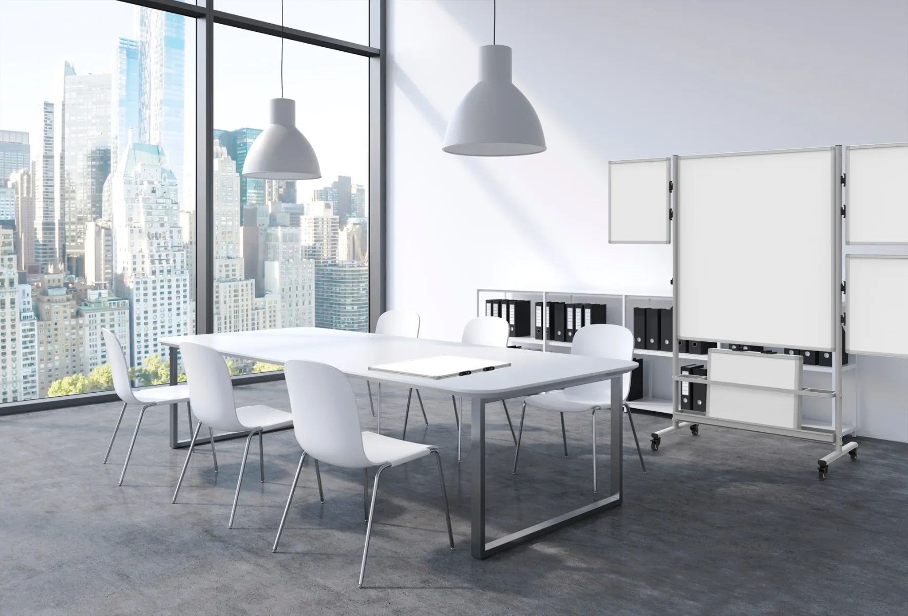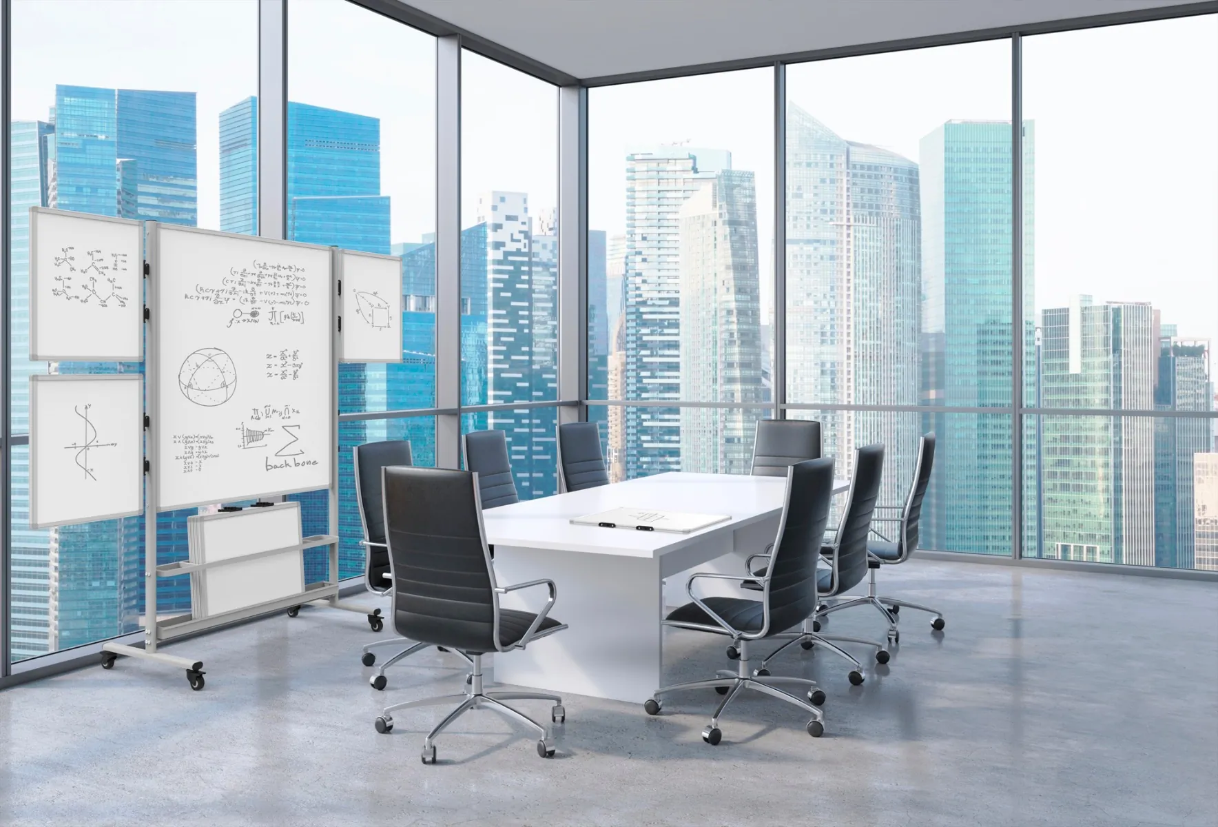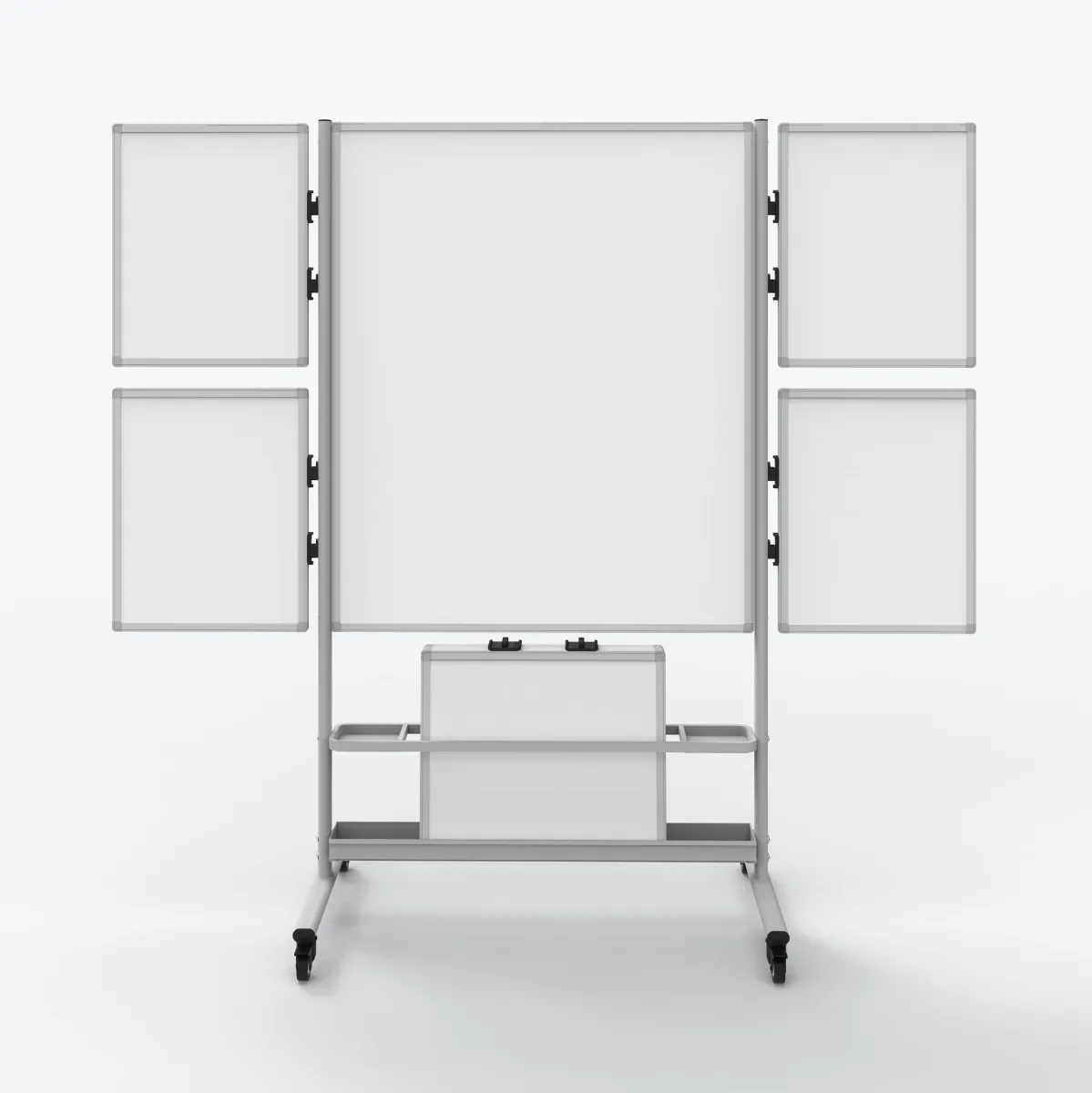 - Large double-sided magnetic whiteboard with four attachable small whiteboards