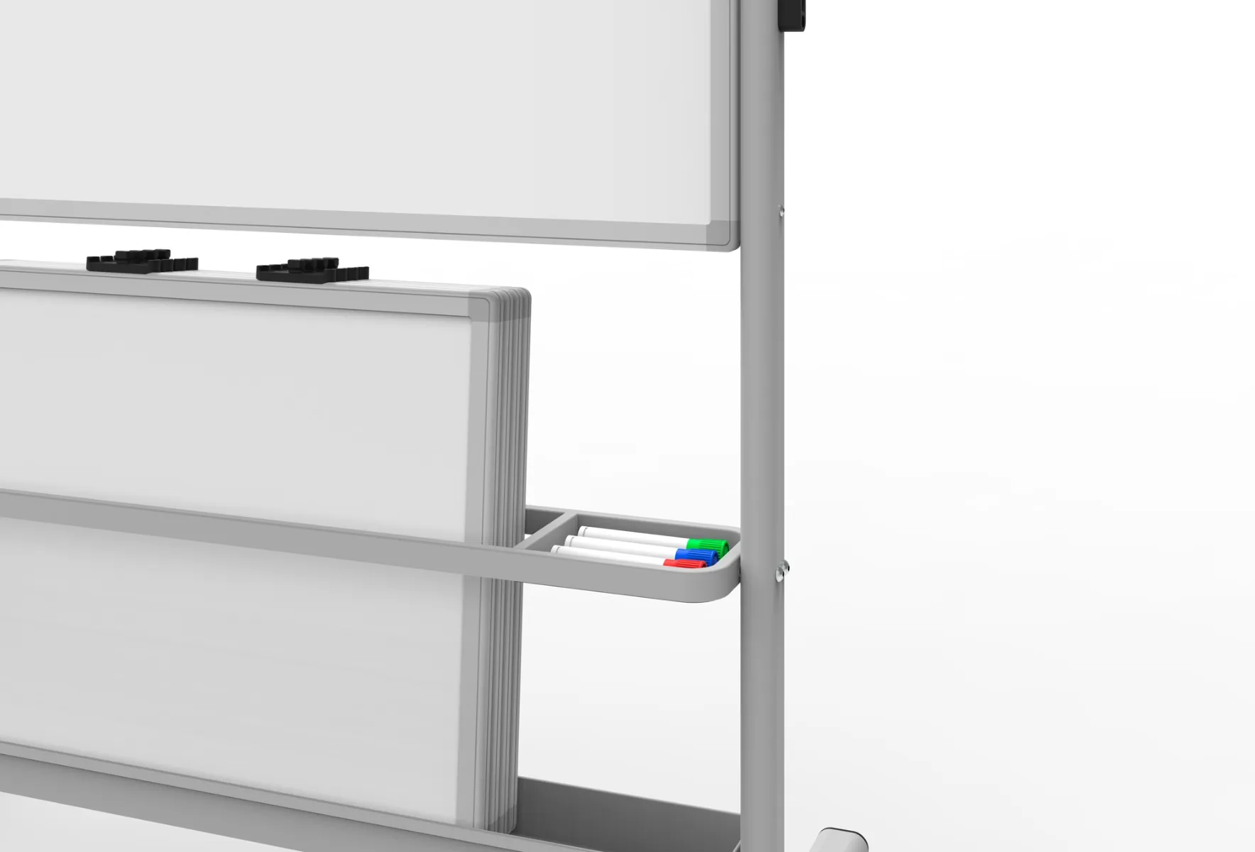 - Integrated dual-purpose marker tray holds markers, erasers, and supports small boards