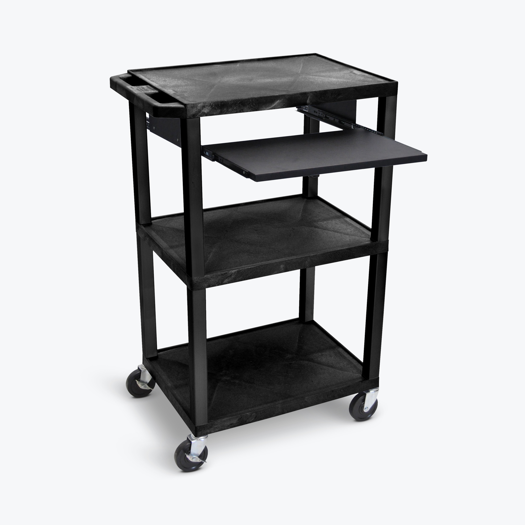 Luxor WTPS42E-B Tuffy Black 42 3 Shelf Cart W Black Pullout Shelf Black Legs Amp; Electric