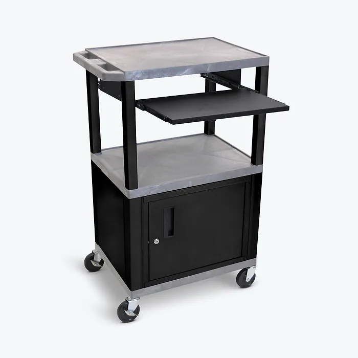 Luxor WTPS42GYC2E-B Tuffy Gray 42 3 Shelf Cart W Black Pullout Shelf Cabinet Legs Amp; Electric