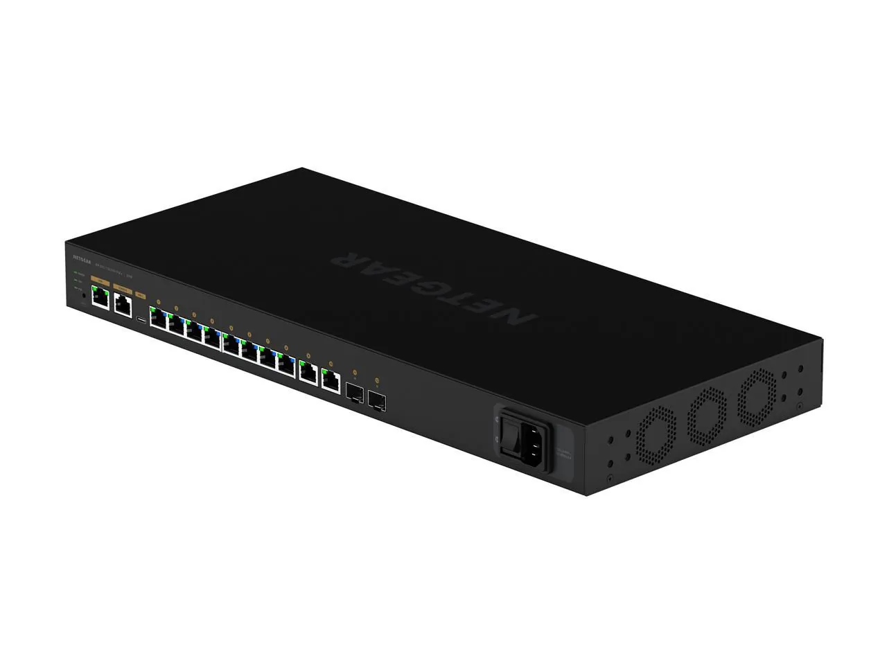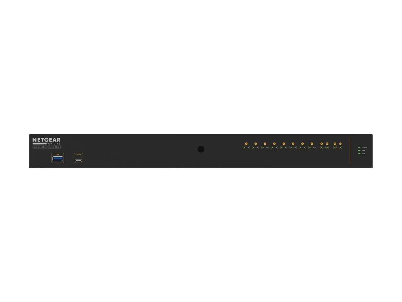 10 Ports - Manageable - 3 Layer Supported - Modular - 240 W PoE Budget - Optical Fiber, Twisted Pair - PoE Ports - 1U High - Rack-mountable - Lifetime Limited Warranty General Information Manufacturer: Netgear, Inc Manufacturer Part Number: GSM4212PX-100NAS Brand Name: Netgear Product Line: AV Line Product Model: M4250-10G2XF-PoE+ Product Name: AV Line M4250-10G2XF-PoE+ Ethernet Switch Marketing Information: Switching Engineered for AV over IPThe NETGEAR AV Line M4250 series was designed with input from AV Professionals. The result is a line of switches built from the ground up to support 1Gb audio and video over IP with customized hardware and software along with dedicated service and support.NETGEAR M4250 series key features: Ranges from 8 to 16 ports with a variety of PoE+ and Ultra90 PoE++ options for 15.4W, 30W, 60W, 75W and 90W AVoIP endpoints Uplink options include 1G for audio installations or standalone video installations as well as 10G uplinks for larger scale video deployments Also includes 12-port multi-gigabit Ethernet and 16-port 1G/10G fiber models for plug and play aggregation in a star topology Designed for a clean integration with traditionalrack-mounted, AV equipment The M4250 switches come with a sleek, black display panel with status in front and all cabling plus additional status in the back Reversed mounting is possible when ports are desired on the front of the rack A second pair of rackmount ears allows the switches to be mounted recessed by 2-inches to allow for the cabling Software-controlled fan adjustments enable the fans to be turned off when ambient temperature and PoE loads are appropriate for a totally fanless operation Threaded holes on the bottom (4xM5 for 50x100mm VESA) and in front (1xM10 for clamps) allow for universal mountingoptionsoutside the rack as well NETGEAR M4250 series AV software features: Pre-configured for audio and video over IP out of the box, the M4250 switches enable encoders and decoders to be connected with zero configuration When more configuration is required, an AV web-based GUI is available at the switch IP address:8080 This interface has been specially designed for AV installers with specific AV-related controls made more accessible and with port-based profiles For audio, profiles for Dante, Q-SYS and AES67 are built-in, as well as an AVB profile (AVB license sold separately For video, the M4250 offers profiles for NVX, SVSI, Q-SYS, NDI, Kramer KDS, Aurora Multimedia, ZeeVee, Atlona, Dante and SDVoE Other AV CODECs and manufactures are supported as well as audio/video/ control mixed profiles To further simplify star deployments, NETGEAR IGMP Plus brings multicast automation between all M4250 switches, and with M4300/M4500 Simply connect the switches together and you are done! NETGEAR M4250 series other software features: All M4250 switches share the same high-end NETGEAR Layer 2 / Layer 3 switching engine for a consistent experience All switches in the M4250 series have another main, IT web-based GUI for midsize Enterprise campus networks, IoT and IPTV Additional features include static, RIP and PIM-SM, DM and SSM multicast routing, DHCP Server and PTPv2 Transparent Clock (1-step E2E) AVB is the only feature requiring a license, all other advanced features are available license-free Advanced classifier-based, time-based hardware implementation for L2 (MAC), L3 (IP) and L4 (UDP/TCP transport ports) Selectable Port-Channel / LAG (802.3ad - 802.1AX) L2/L3/L4 hashing for fault tolerance and load sharing with any type of Ethernet channeling Voice VLAN with SIP, H323 and SCCP protocols detection and LLDP-MED IP phones automatic QoS and VLAN configuration Efficient authentication tiering with successive DOT1X, MAB and Captive Portal methods for streamlined BYOD Product Type: Ethernet Switch Interfaces/Ports Total Number of Network Ports: 10 Modular: Yes Port/Expansion Slot Details: 2 x 10 Gigabit Ethernet Expansion Slot Port/Expansion Slot Details: 2 x Gigabit Ethernet Network Port/Expansion Slot Details: 8 x Gigabit Ethernet PoE+ Media & Performance Media Type Supported: Optical Fiber Media Type Supported: Twisted Pair Ethernet Technology: 10 Gigabit Ethernet Ethernet Technology: Gigabit Ethernet Network Technology: 1000Base-T Network Technology: 10GBase-X I/O Expansions Number of Total Expansion Slots: 2 Expansion Slot Type: SFP+ Shared SFP Slot: No Number of SFP+ Slots: 2 Network & Communication Layer Supported: 3 Management & Protocols Manageable: Yes Power Description PoE (RJ-45) Port: Yes PoE Budget: 240 W Power Source: Power Supply Power Plug Type: Type C Plug/Connector Type: IEC 60320 C14 Physical Characteristics Compatible Rack Unit: 1U Form Factor: Rack-mountable Height: 1.7" Width: 17.3" Depth: 7.9" Miscellaneous Environmentally Friendly: Yes Environmental Certification: ErP Environmental Certification: REACH Environmental Certification: RoHS Environmental Certification: WEEE Country of Origin: Thailand Warranty Limited Warranty: Lifetime