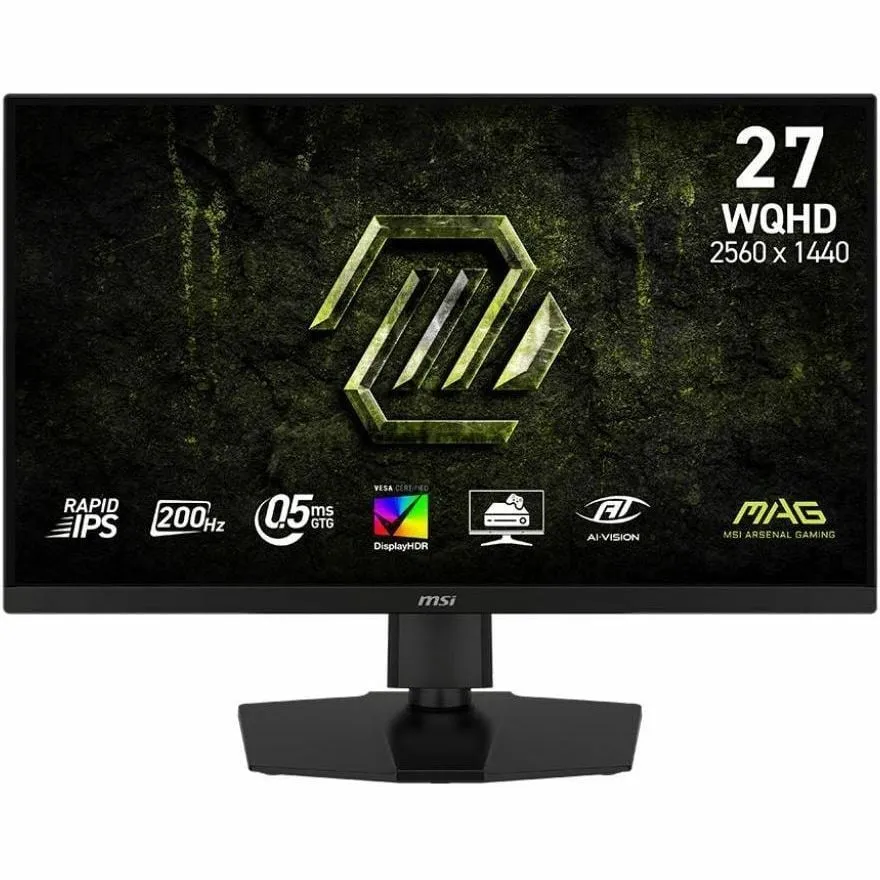 MAG 274QPF E20 Flat Gaming Monitor, Metallic Black w/ Glassy Black Trim, 27" screen, Rapid IPS Panel, 2560x1440 QHD Resolution, Adaptive Sync, HDR 400, non-Glare with narrow bezel, 200Hz Refresh Rate, Tilt, Swivel, Height and Pivot Adjustable