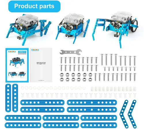 Enhance your mBot experience with the Six-Legged Robot Add-On Pack! This pack provides all the essential parts to build a dynamic six-legged robot, perfect for robotics enthusiasts and educators.
