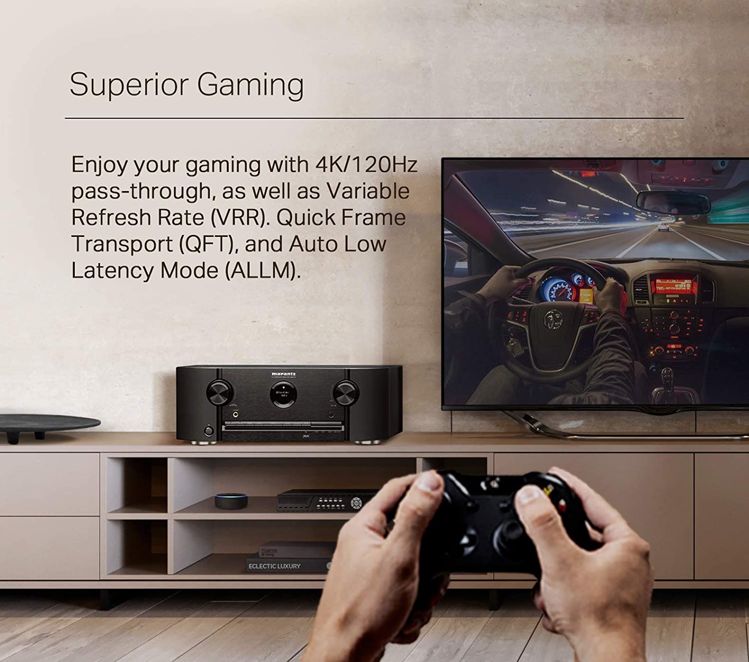 - SUPERIOR LAG-FREE GAMING with 4K/120Hz* pass-through, Variable Refresh Rate (VRR), Quick Frame Transport (QFT), and Auto Low Latency Mode (ALLM), which reduces or eliminates lag and frame tearing for a smoother, lag-free gaming experience