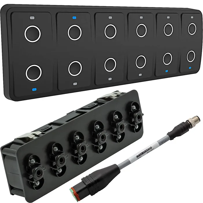 Model: A3802-1This CKM12 12 Button Customizable Keypad is part of the MPower Series by Maretron. It replaces standard mechanical circuit and switches with state-of-the-art digital power distribution. Customers looking to achieve the power and convenience of advanced home automation for their boats will appreciate MPowers seamless, reliable operation as well as simple and cost-effective installation. The CKM12 is a customizable keypad featuring laser-etched legends and dimmable LED function lights for each button. The LEDs also provide diagnostics when fault conditions are detected.