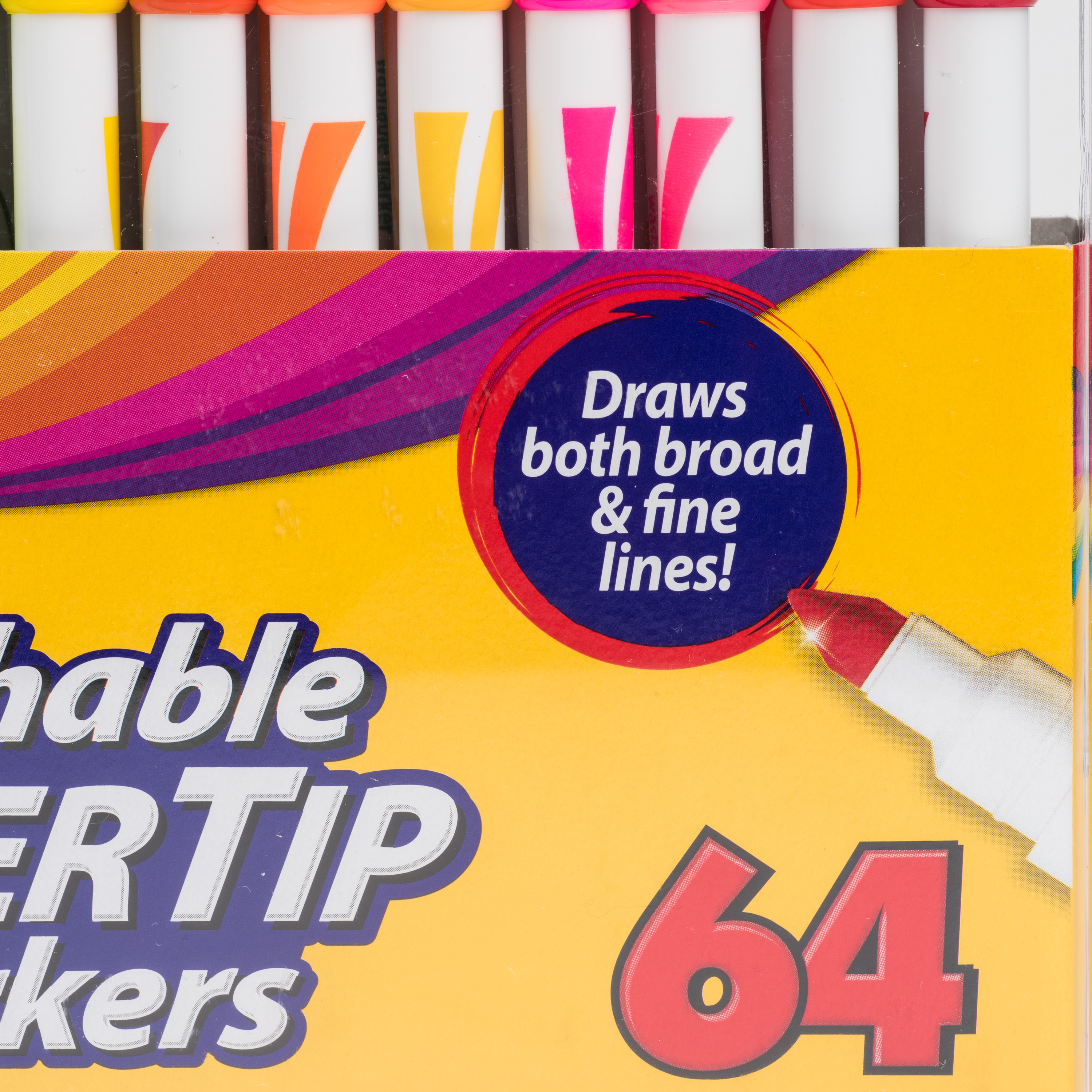 Washable Supertip Markers, Fine/broad Bullet Tips, Assorted Colors, 64/set