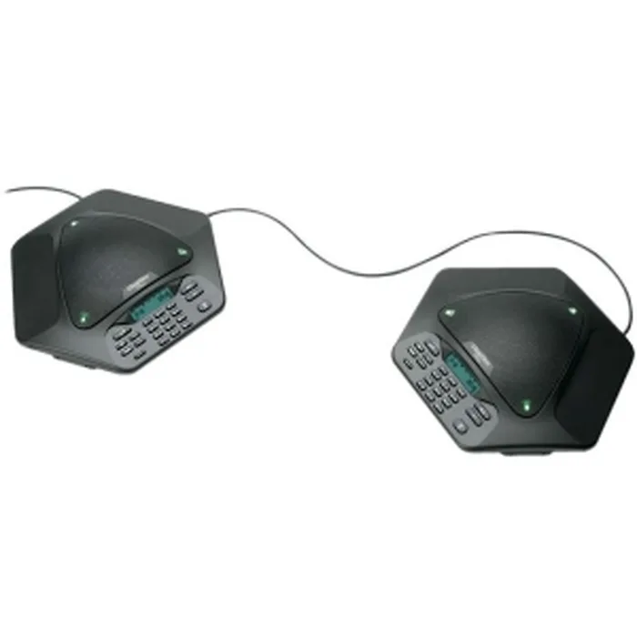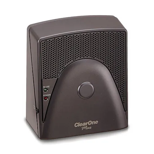 ClearOne the company that first brought you wireless tabletop conferencing now brings you another first in innovation. Only the ClearOne MAXAttach conferencing system provides unprecedented expansion capabilities to ensure complete microphone and loudspeaker coverage. No matter where participants are seated conversations are natural and effortless. The two phone units included in the MAXAttach conferencing system enable even distribution of microphones and loudspeakers as well as centralized access to dialing mute and volume controls.The MAXAttach features advanced audio technology typically found only in high-end installed audio systems including Distributed Echo Cancellation noise cancellation and advanced microphone activation processes.