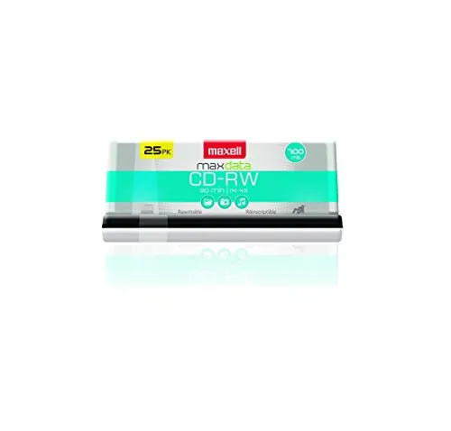 The Maxell 80-Minute 700MB CD-RWs are designed for reliable data storage and convenient recording. Each spindle includes 25 rewritable discs, perfect for backing up your data, music, or files. With a capacity of 700MB and compatibility with writers up to 4x speed, these discs are ideal for your everyday needs.