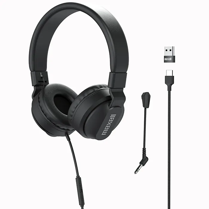 Maxell 197304 HPBMT1 Over-Ear USB-C Headphones with Detachable Boom Microphone, Black