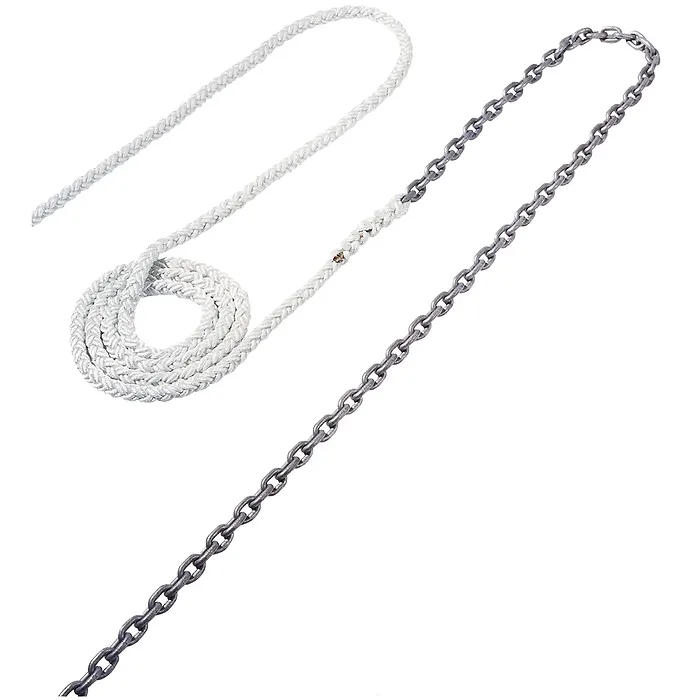 25' of 3/8" HT spliced chain to 250' of 5/8" Nylon Brait rope