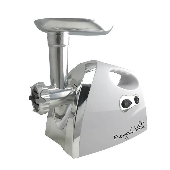 Electric grinder by Mega Chef enables you to make more healthier and more flavorful cooked meals like burgers, meatballs, sausages, meatloaf and beyond. With 1200 Watts of power, this grinder is perfect for processing, yielding, chopping, tenderizing and grinding any types of meats, nuts and vegetables. With its 3 different grinding blades, this grinder makes for the essential kitchen appliance. * Stainless Steel Parts * Forward and Reverse Motor * 1200 Watt * Keyboard Switch * Cord Storage Back Panel Includes: * 1 Grinding Blades * 3 Cutting Plates * 1 Kibbe Attachment * 1 Food Pusher * Hopper Plate * Sausage Attachment Power Supply: * 120V AC, 50-60Hz * 1200 Watts * Item Dimensions: 17.55" L x 10.07" W x 7.67" H Item Weight: 7.84 lbs