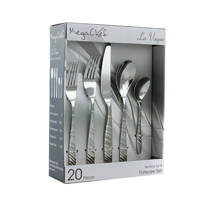 Megachef MCFW-LA VAGUE-SILVER La Vague 20 Piece Flatware Utensil Set Stainless Steel Silverware Metal Service For 4 In Silver