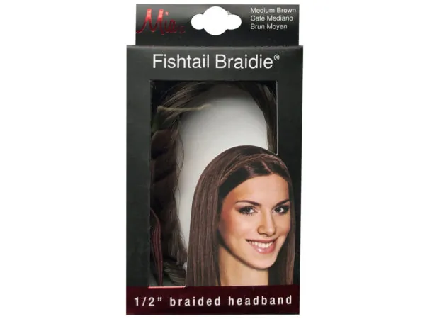 Bulk KA641 Mia Beauty 12" Brown Fishtail Braided Headband