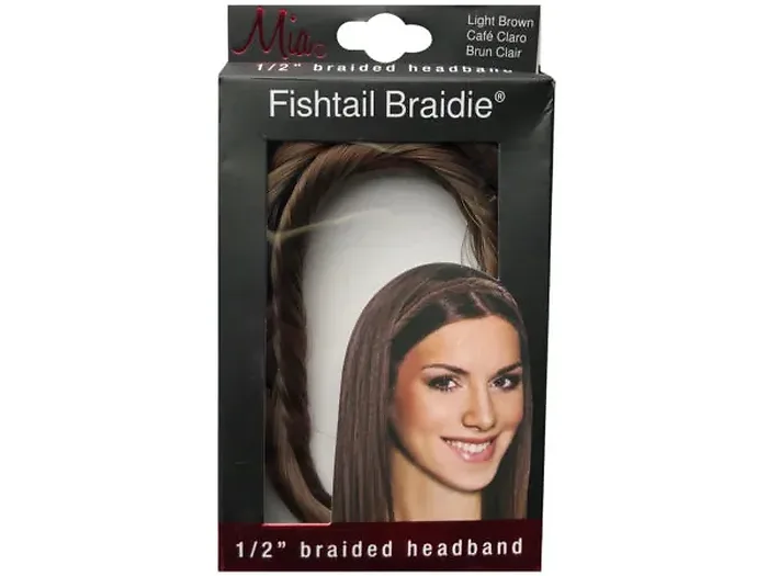Enhance your hairstyle with the Mia Beauty Light Brown Fishtail Braided Headband. This chic accessory adds a touch of elegance and style to any look.