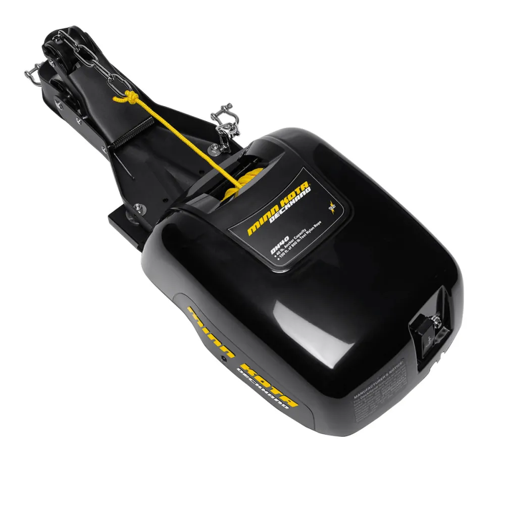 For pontoons, this DeckHand gives you control of the winch from the helm as well as the flexibility to remove the winch from the boat to clear the deck. Automatically raise and lower your anchor at the touch of a button. DeckHand 40 has a 40-lb anchor capacity (anchor not included) and is pre-spooled with 100 feet of 800-lb test nylon rope. Universal davit can be mounted at base of DeckHand or in remote position on boat deck. Davit also stows anchor horizontally to eliminate anchor swing. Anchor shackle allows for quick changes between anchors. A special anti-drag system senses the bottom to allow for controlled drifting. Runs on 12-volt battery (not included).