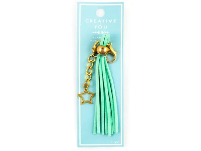 Add a splash of color to your accessories with this Mint Green Keychain Tassel. Perfect for planners, purses, and backpacks, it features a gold bead that holds the tassel together and a charming star dangle for extra flair.