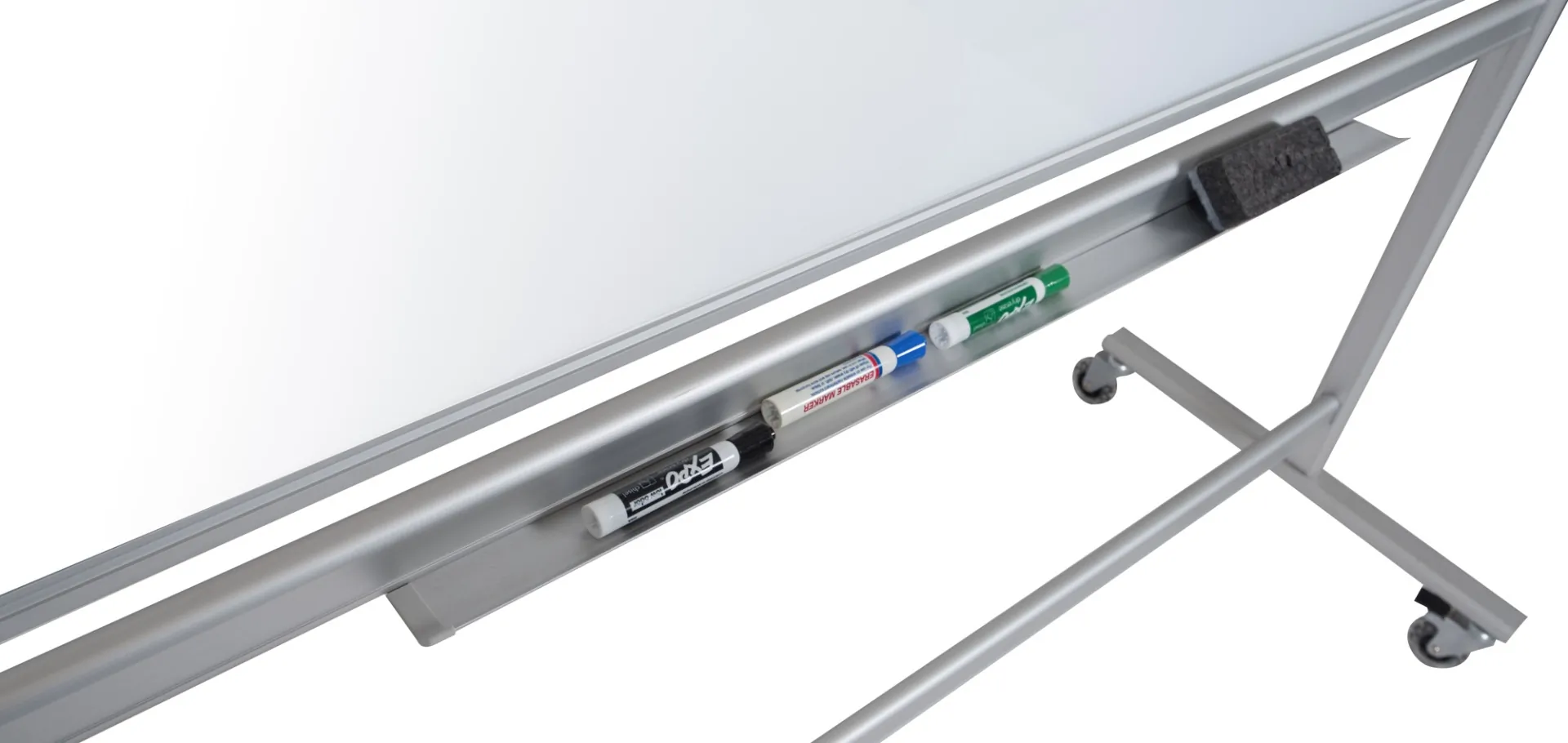 Equipped with four 3" rollerblade-style casters, two of which have locking brakes, this marker board ensures smooth movement and safety in high-traffic areas. Easy to assemble and packaged with care, it meets ISTA 3A Packaging Standards to withstand shipping damage.