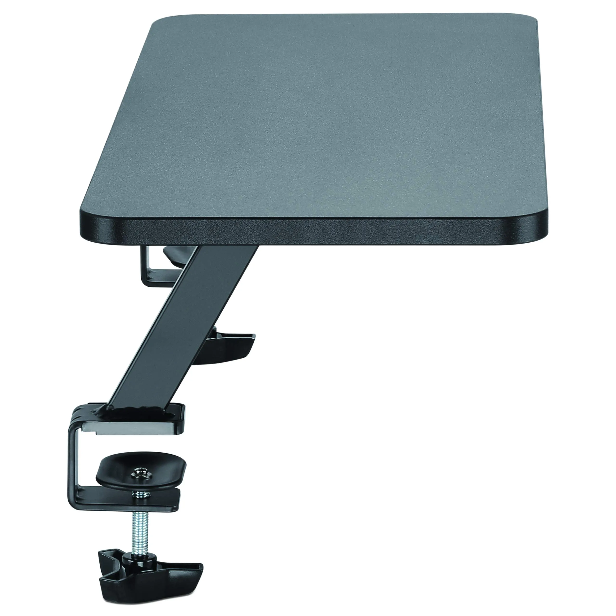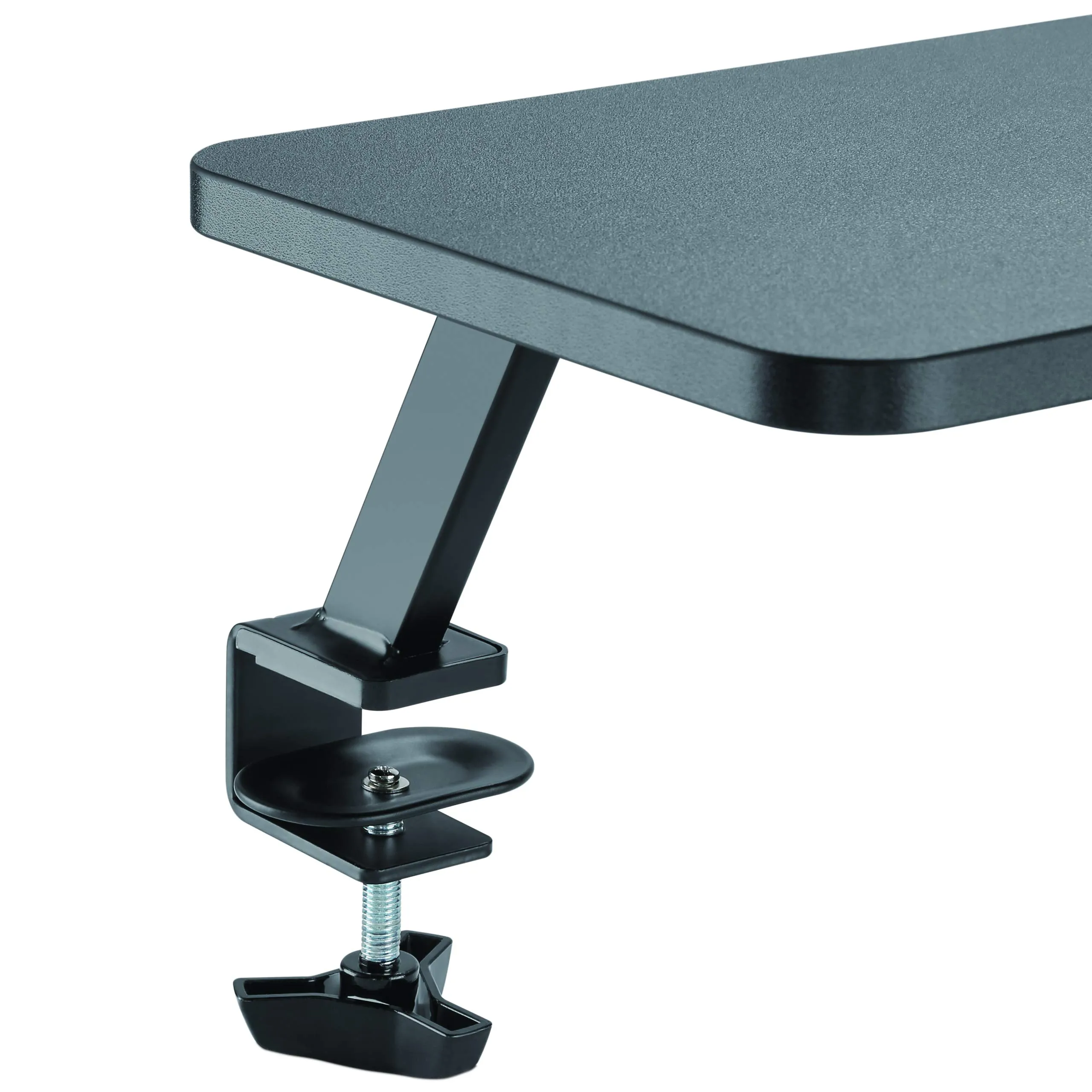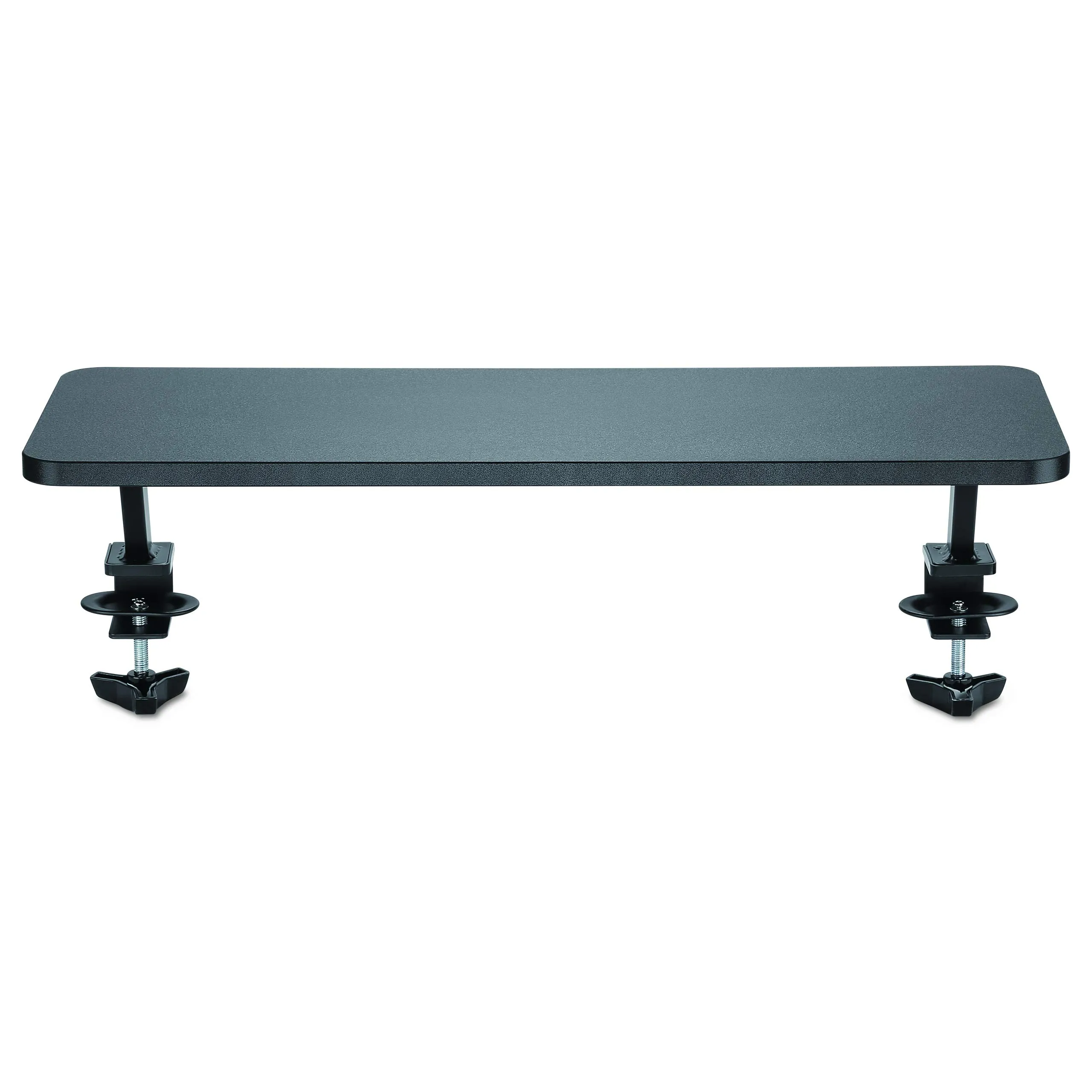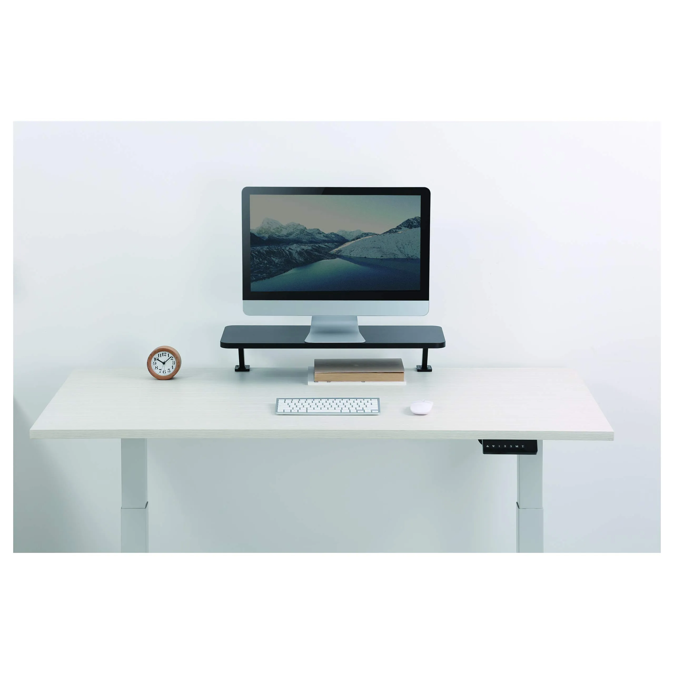 Minimize clutter in your office and lift your monitor with this black monitor riser stand Clamp on monitor shelf to raise a single monitor 5.1"/13cm off the desk surface Universal PC monitor platform 25.6"x10.2" (65cmx26cm) For up to 34" monitors with max weight capacity up to 44lb/20kg Attaches to desk surfaces up to 1.3" (33mm) thick Use area underneath to store items Desk mount computer screen stand provides an elevated monitor