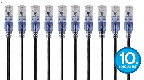 Monoprice 33267 10pack_ Slimrun Cat6a Ethernet Network Patch Cable_ 10g 25ft Black