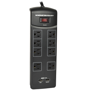 Monster 121895-00 Core Power 800 8outlet 1440 Joules Surge Protector W2 Usbcharging Ports Black