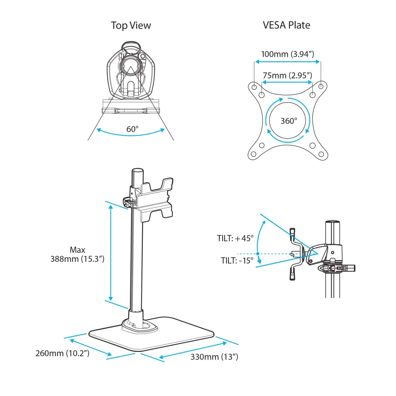 Startech ARMPIVSTND Mount Your Monitor On A Desk Stand With Tilt Pivot And Height Adjustments Wo