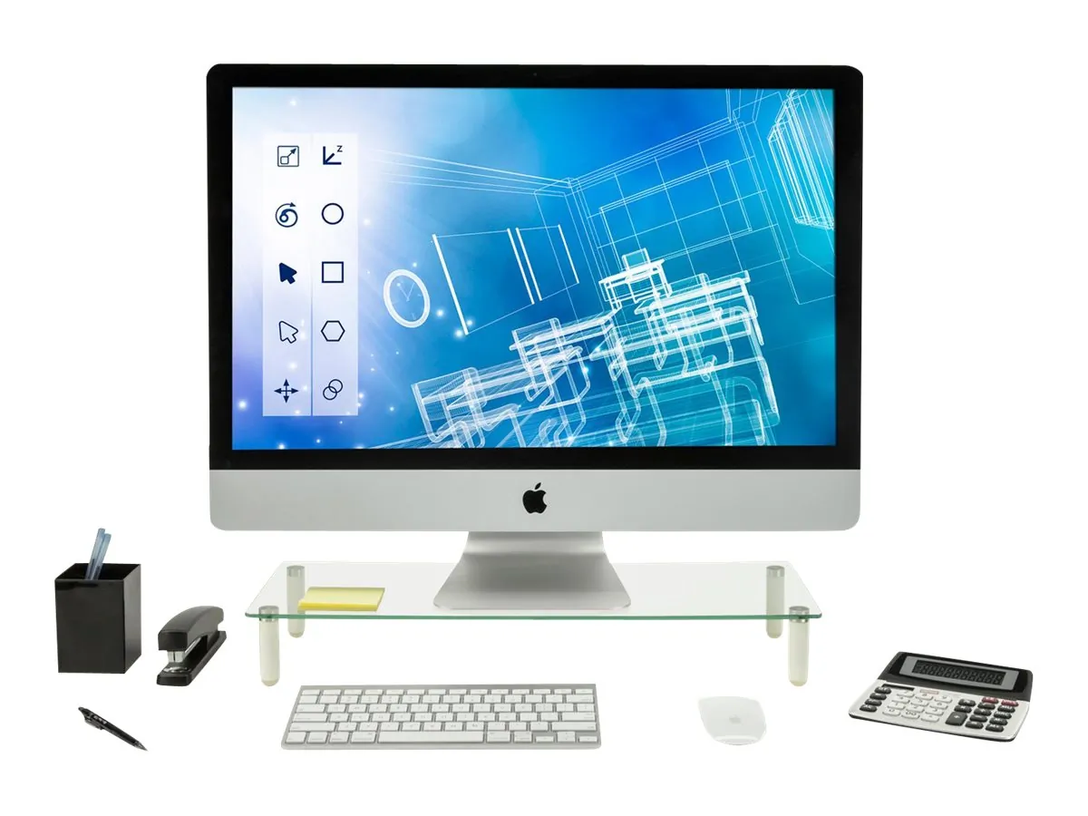 The MOUNT-IT Adjustable Glass Monitor Stand elevates your display to a comfortable height, promoting better ergonomics and reducing neck and eye strain. Crafted with high-quality glass and aluminum, this monitor stand seamlessly complements any room or office decor. Optimize your workspace by utilizing the space underneath the stand for storing accessories and personal items.