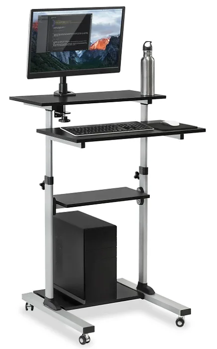 The MOUNT-IT! Adjustable Mobile Stand Up Desk is designed for flexibility and ergonomic comfort. Perfect for home or office use, this mobile desk allows you to switch between sitting and standing positions with ease, promoting a healthier workspace.