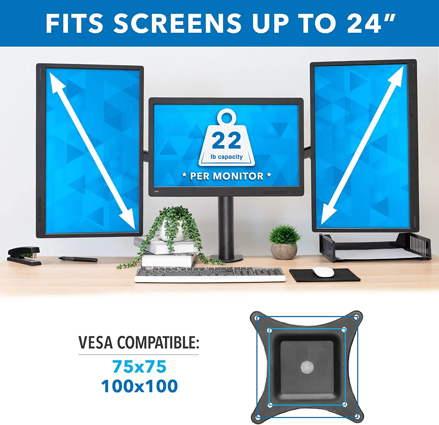 - Supports up to 22 pounds per monitor with VESA compatibility