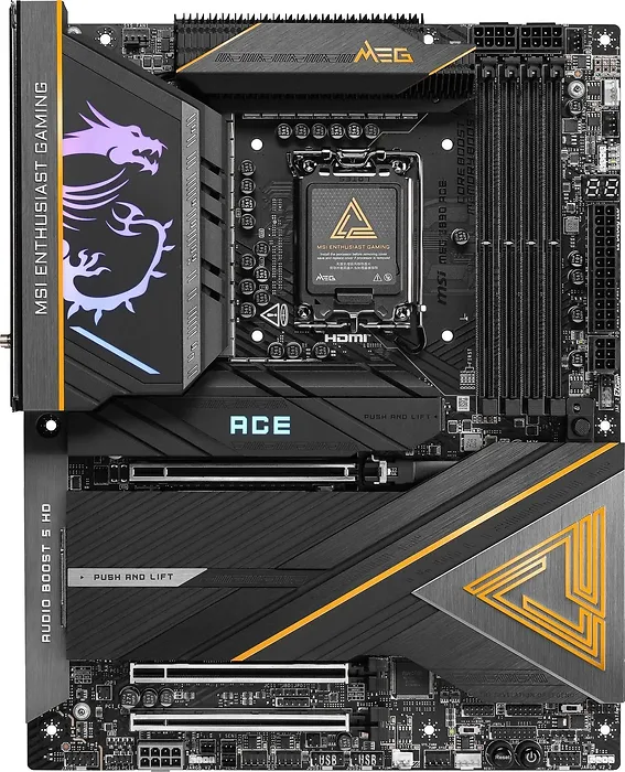 The MSI MEG Z890 ACE motherboard is designed for high-performance gaming and productivity. With its LGA 1851 socket, it supports the latest Intel processors and features advanced cooling capabilities to ensure optimal performance during intense workloads.