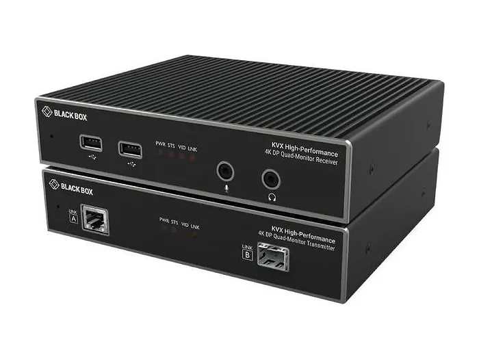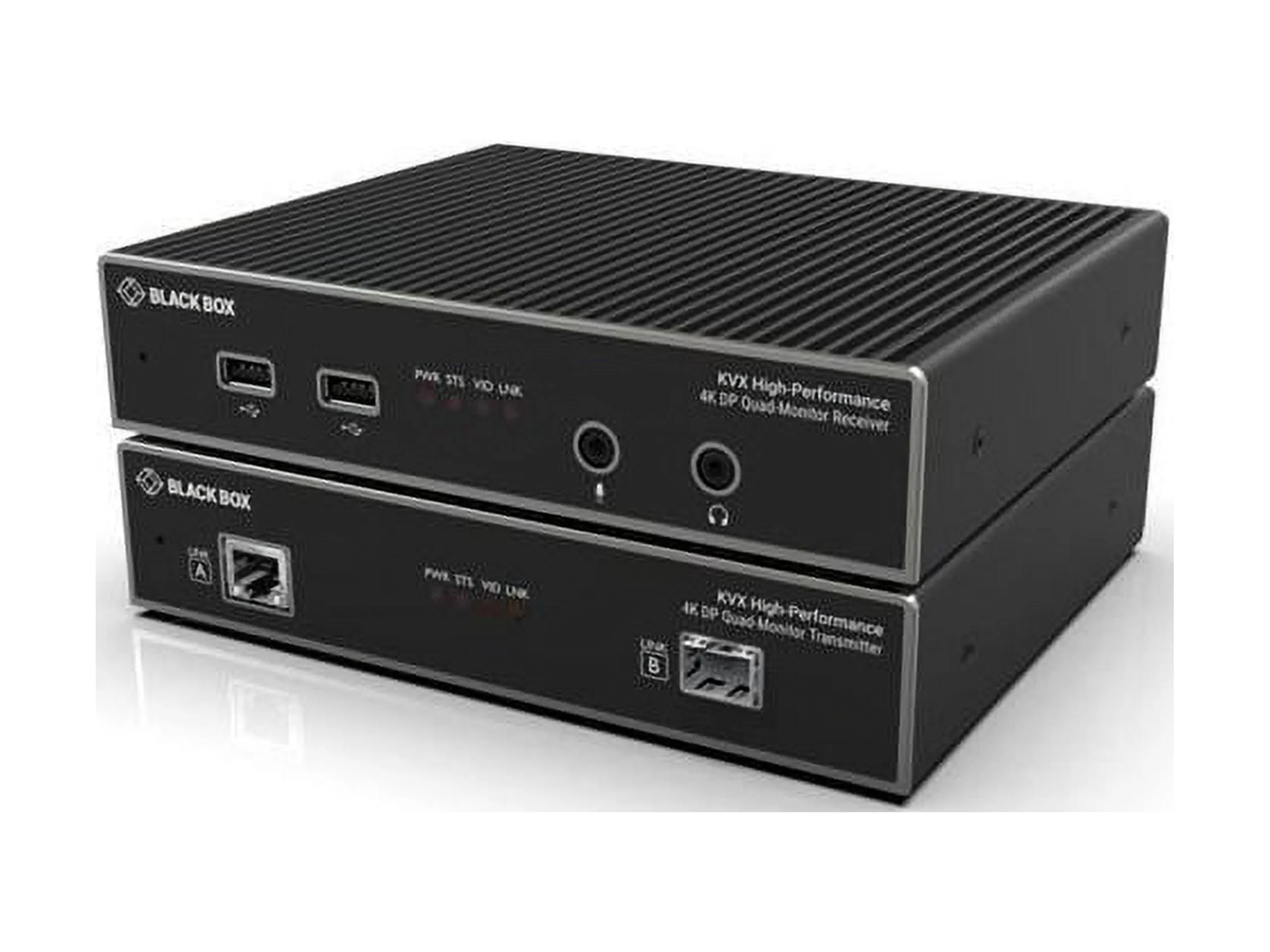 Black KVXHP-400 Mst Kvm Extender Over Catxfiber Quadmonitor 4k Displayport Usb Hid Serial