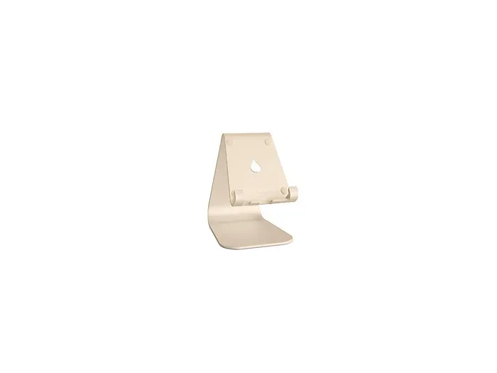 The MStand Mobile Stand in Gold is designed to provide a stable and stylish way to hold your iPhone and other smartphones. With its sleek and modern design, it complements any workspace or home environment.
