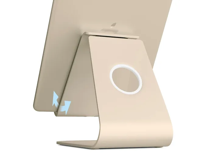Introducing the Mstand TabletPlus Adjustable Stand in stylish gold. This versatile tablet stand provides adjustable heights and angles to enhance your viewing experience. Perfect for both home and office use, it supports various tablet sizes securely.