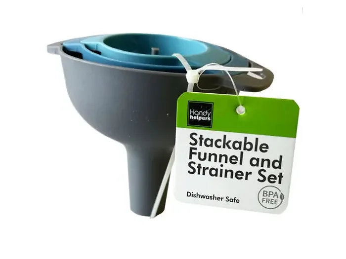 This stackable funnel and strainer set is designed for convenience and efficiency in your kitchen. Crafted from durable materials, it allows for easy pouring, straining, and transferring liquids and solids. The stackable design saves space in your kitchen while ensuring that the pieces are readily accessible when you need them.