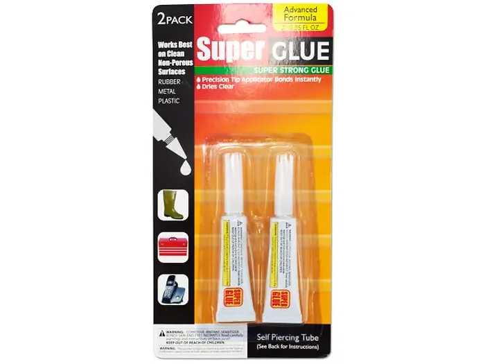The Multi-Purpose Super Glue Kit is perfect for all your bonding needs. Ideal for mending and finishing projects, this glue securely adheres rubber, metal, glass, plastic, ceramic, wood, and much more. Each kit includes two 0.05 fluid ounce tubes of super glue, ensuring you have enough for multiple applications. Instructions for use are conveniently placed on the back of the packaging, and the kit is packaged in a durable blister pack for easy storage.