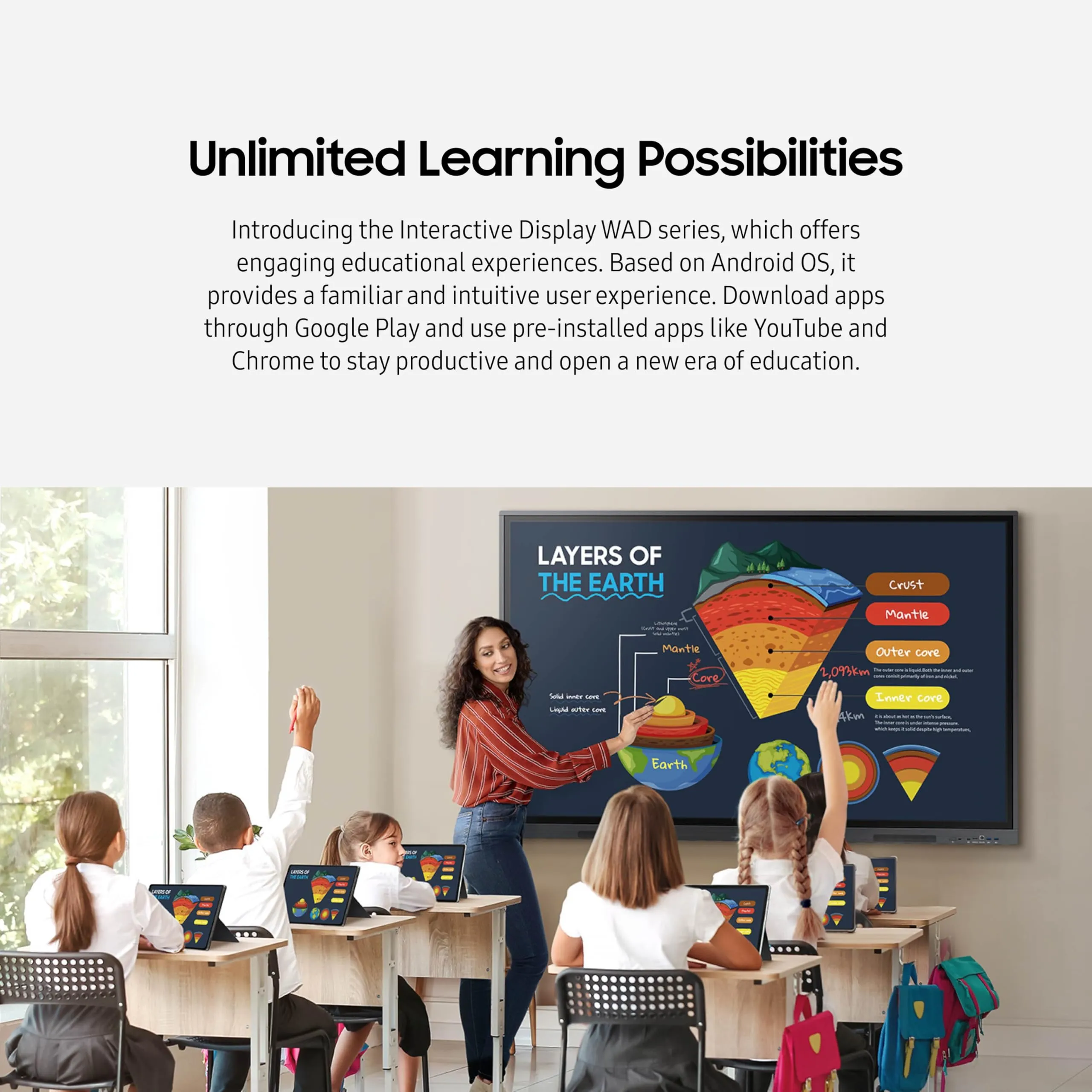 Built on the Android platform, it provides a user-friendly experience with access to a wide range of applications and tools, making it perfect for offices, schools, and public spaces.