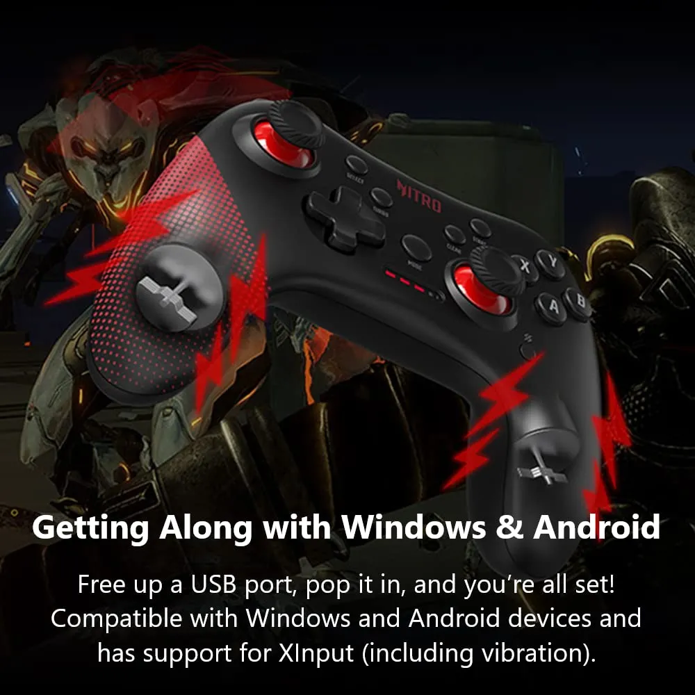 Experience seamless gaming with the NITRO Game Controller, designed for both Windows and Android devices. This versatile controller offers reliable XInput support, allowing you to enjoy your favorite games with precision and comfort.