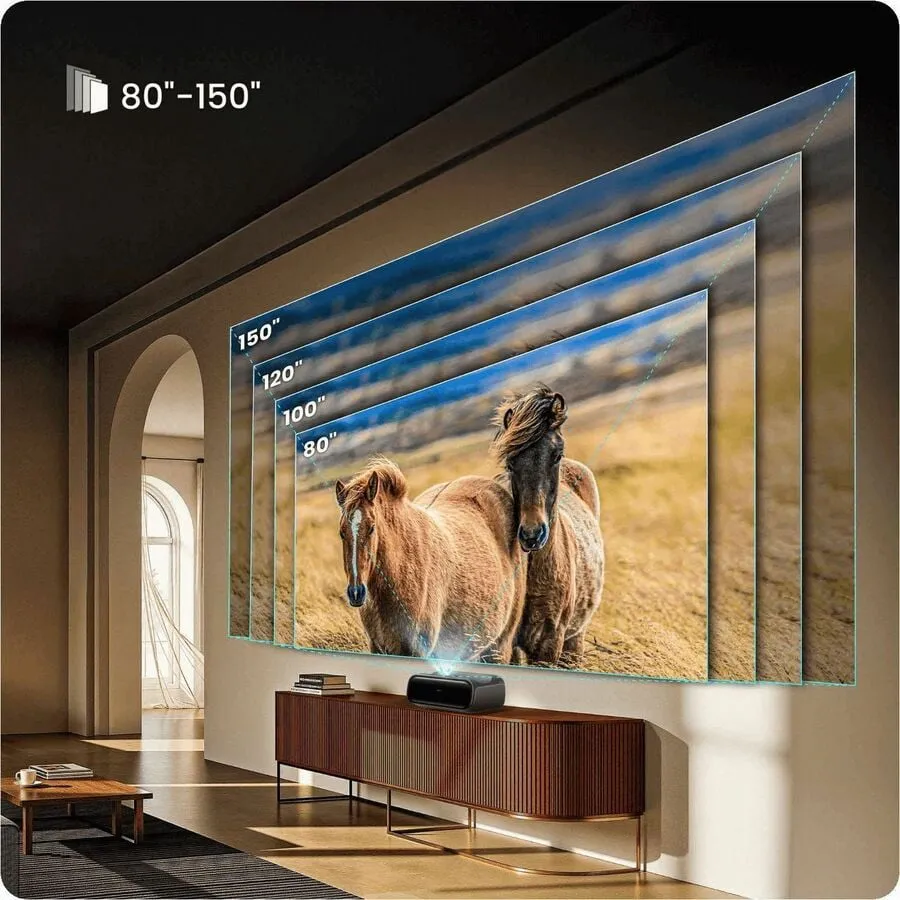 4K Ultra Short Throw Projector-3600 ISO Lumen-4000:1 FOFO contrast-MALC 3.0 Triple Laser-Google TV-Voice assistant-20W speakers-40Hz subwoofer-Dolby Audio- DTS:X for richroom-filling sound-Flexi Smart Adjustment in 1s- Auto Focus-Auto Keystone-Intelligent Screen Fitting-3D Movies Experience-Home Theater Projector