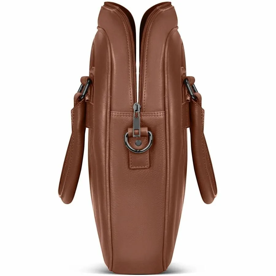 The Slim Briefcase from the Onyx Collection is the epitome of elegant design and practicality. Constructed from premium top-grain leather, this briefcase fits a 15.6-inch laptop and features a separate tablet compartment. Its sleek profile houses a thoughtful RFID pocket, inner keychain, and multiple slip pockets for seamless organization. The adjustable shoulder strap and top-carry handle provide versatility, while the trolley strap allows for hands-free transport. Perfect for professionals on the go, it offers ample storage in a compact form.