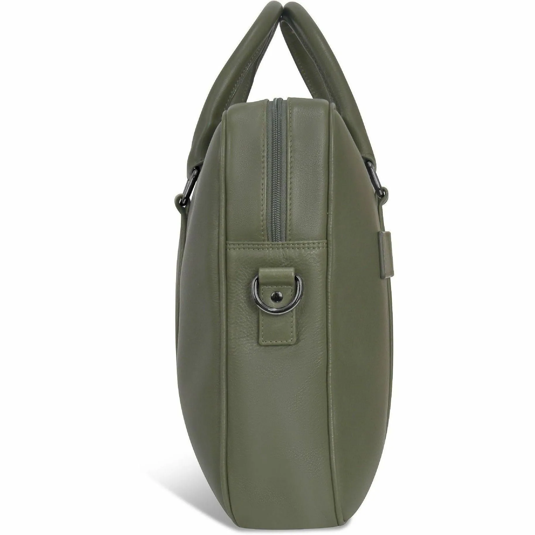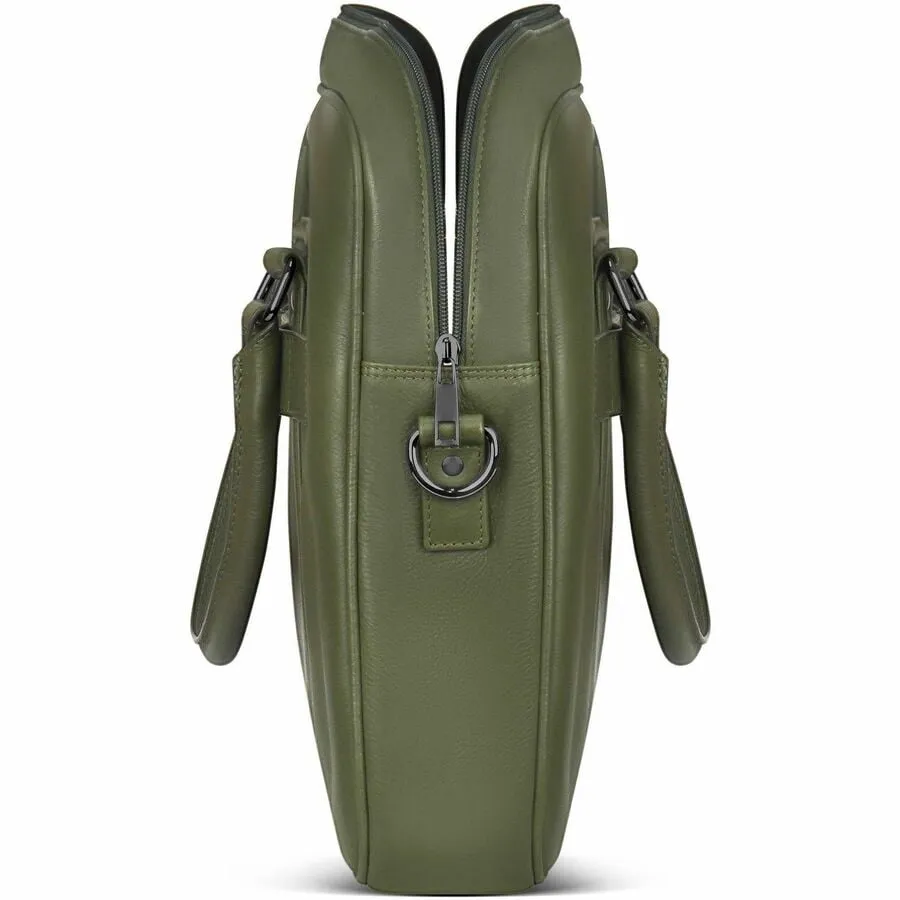 The Slim Briefcase from the Onyx Collection is the epitome of elegant design and practicality. Constructed from premium top-grain leather, this briefcase fits a 15.6-inch laptop and features a separate tablet compartment. Its sleek profile houses a thoughtful RFID pocket, inner keychain, and multiple slip pockets for seamless organization. The adjustable shoulder strap and top-carry handle provide versatility, while the trolley strap allows for hands-free transport. Perfect for professionals on the go, it offers ample storage in a compact form.