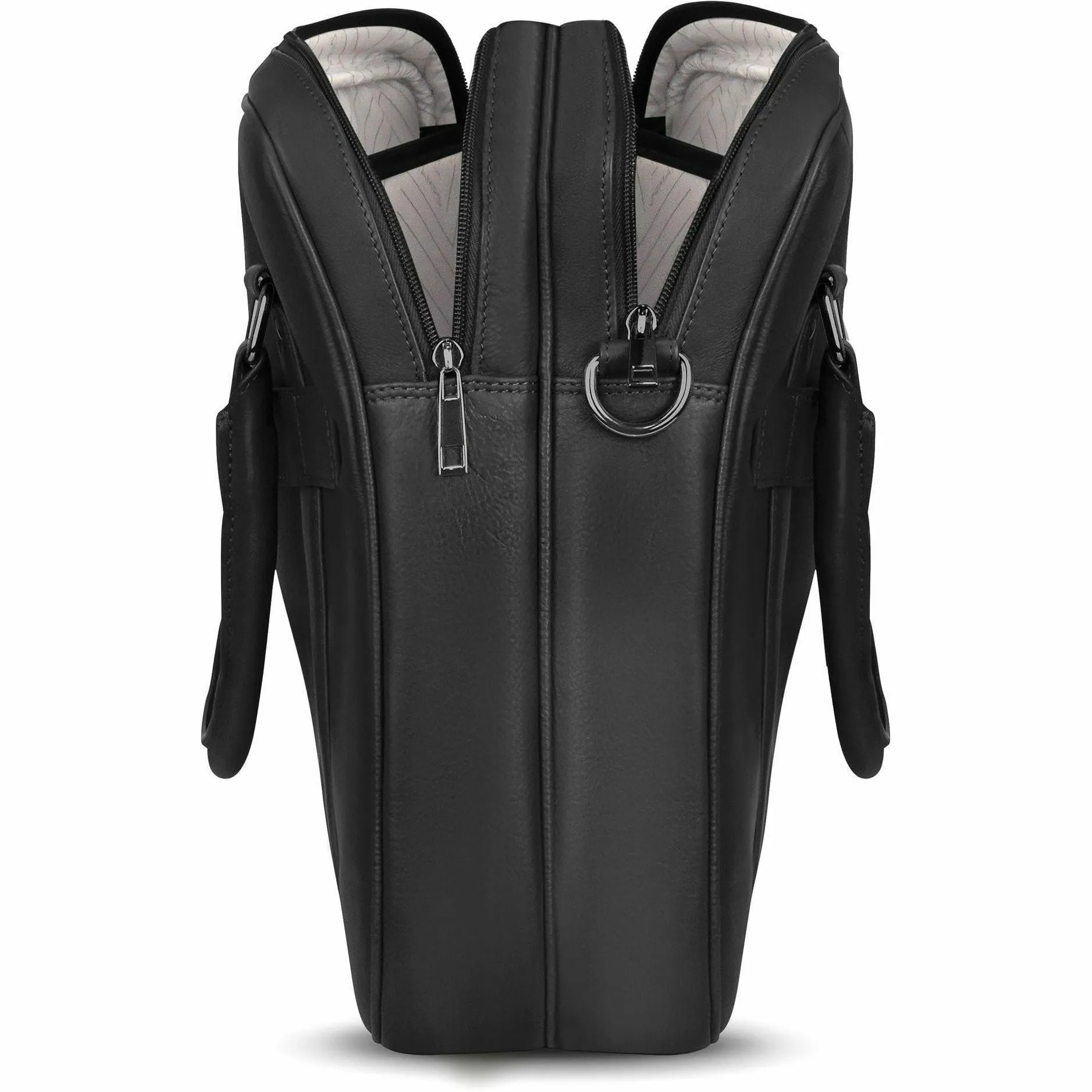The Onyx Collection Briefcase redefines professional elegance. Crafted from premium top-grain leather, its double compartment design fits a 15.6-inch laptop and a tablet with ease. Thoughtful organizational features include an RFID pocket, inner keychain, two pen holders, and four slip pockets, keeping your essentials in order. The adjustable shoulder strap and top-carry handle provide comfort, while the trolley strap allows for easy navigation. With this briefcase, you ll be ready to tackle any challenge in style.
