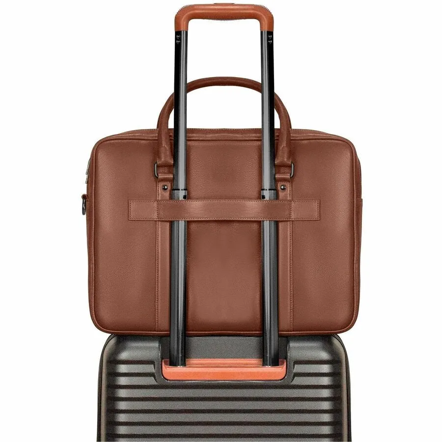 The Onyx Collection Briefcase redefines professional elegance. Crafted from premium top-grain leather, its double compartment design fits a 15.6-inch laptop and a tablet with ease. Thoughtful organizational features include an RFID pocket, inner keychain, two pen holders, and four slip pockets, keeping your essentials in order. The adjustable shoulder strap and top-carry handle provide comfort, while the trolley strap allows for easy navigation. With this briefcase, you ll be ready to tackle any challenge in style.