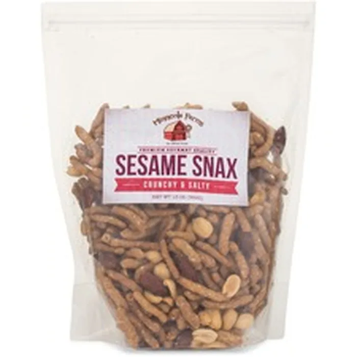 Snack mix features a blended mix of sesame stix and rice crackers for a delicious combination of crunch and taste. Crunchy and salty recipe offers a satisfying snack that can be enjoyed at any time of day. Releasable bag closes tightly to lock in freshness when stored. Snack mix is perfect for serving at company gatherings, boosting office morale, impressing guests and more.