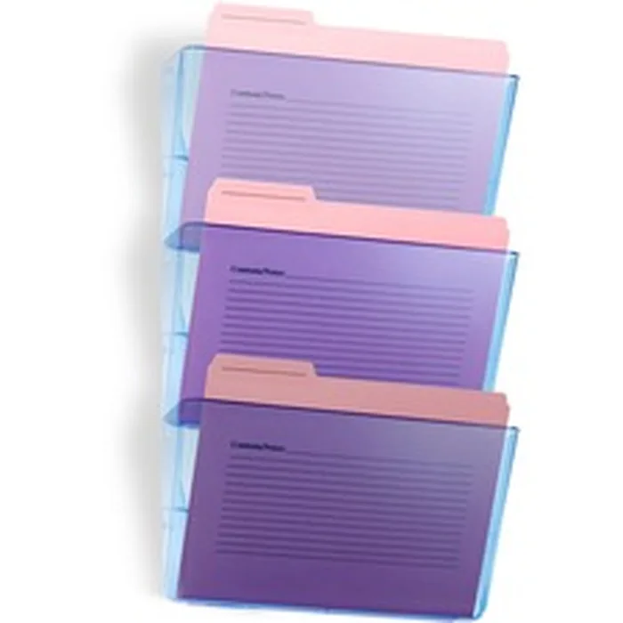 Wall File features a stackable design to make adding more files convenient and easy. Included mounting hardware makes it simple to secure it to walls or partitions. Transparent plastic construction allows you to see the front of your folders to quickly find what you need. Stacking wall file is perfect for organizing mail, documents and more.