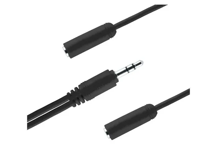 - Connects two headsets to one audio source