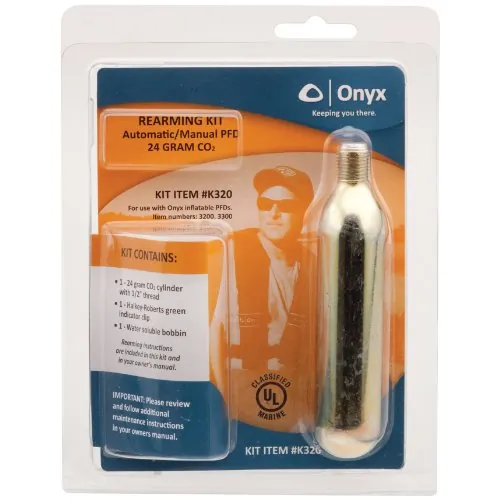 This re-arm kit fits Onyx automatic/manual inflatable life jackets and personal flotation devices such as the A/M-24 series.