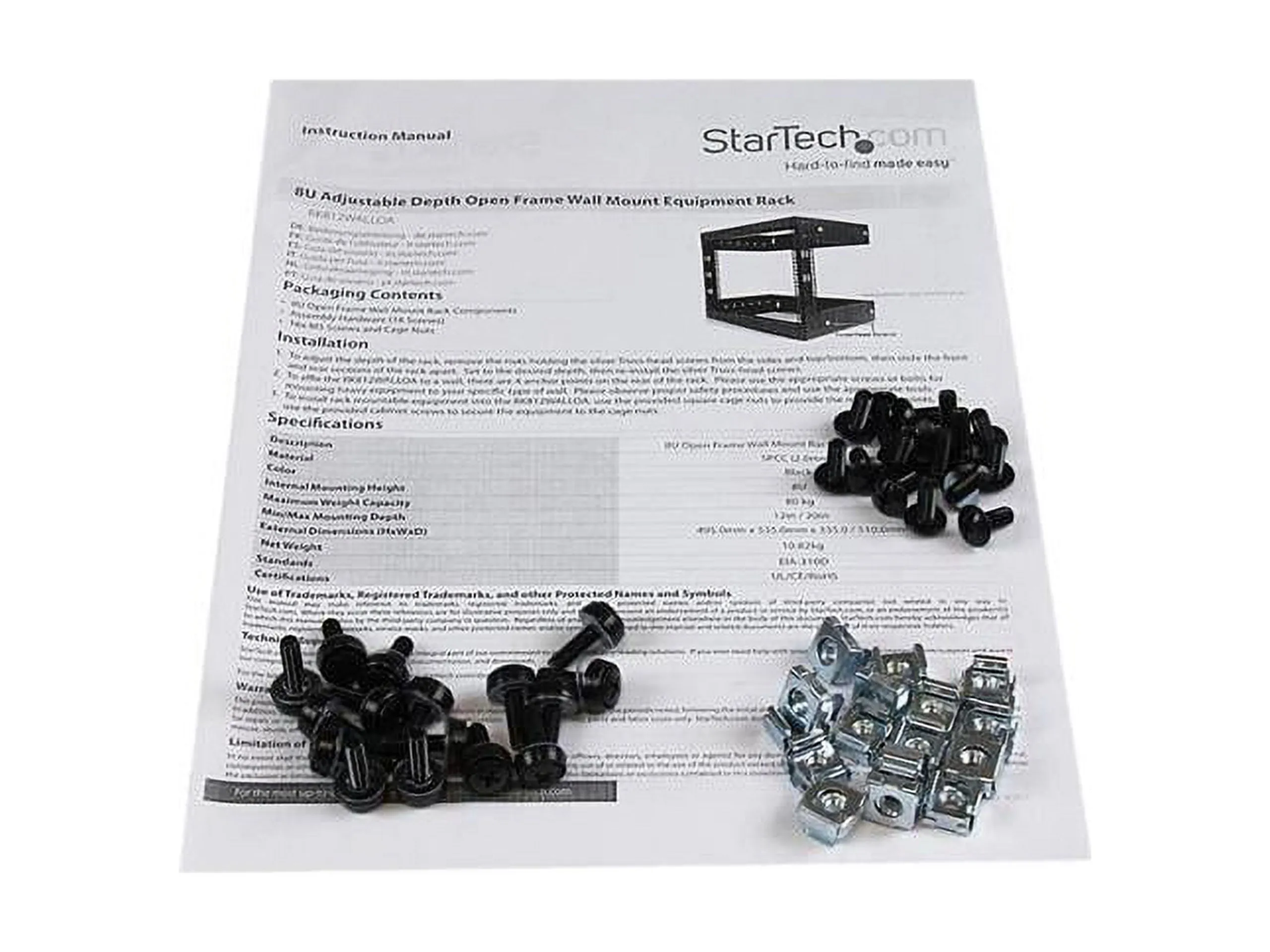 Startech RK812WALLO Open Frame 8u Wall Mount Server Rack For Patch Panels Switches Data Equipment