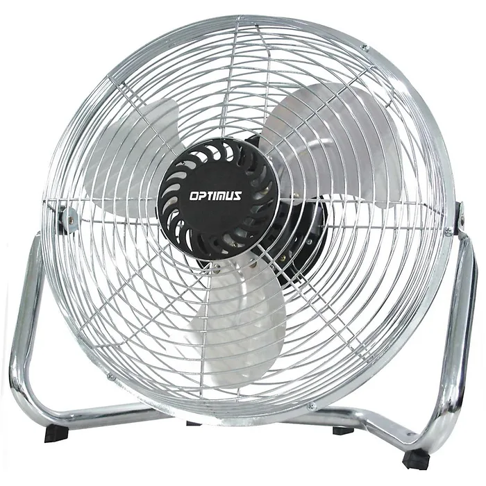 Keep that air circulating in any space with the Optimus 12" Industrial-Grade High-Velocity Stand 3-Speed Fan. It has three speeds and a high-torque motor for a heavy-duty performance. It's an all-metal construction and the wire grill is reinforced for added safety, making it ideal for use in the garage or shop. It also features a 360-degree circle head tilt for providing a larger coverage and straight up ceiling to floor ventilation. This fan is ETL listed for safety, and has 1 year limited warranty. If you are looking for a gust of cool wind on a hot day inside your workplace, this fan has got you covered.